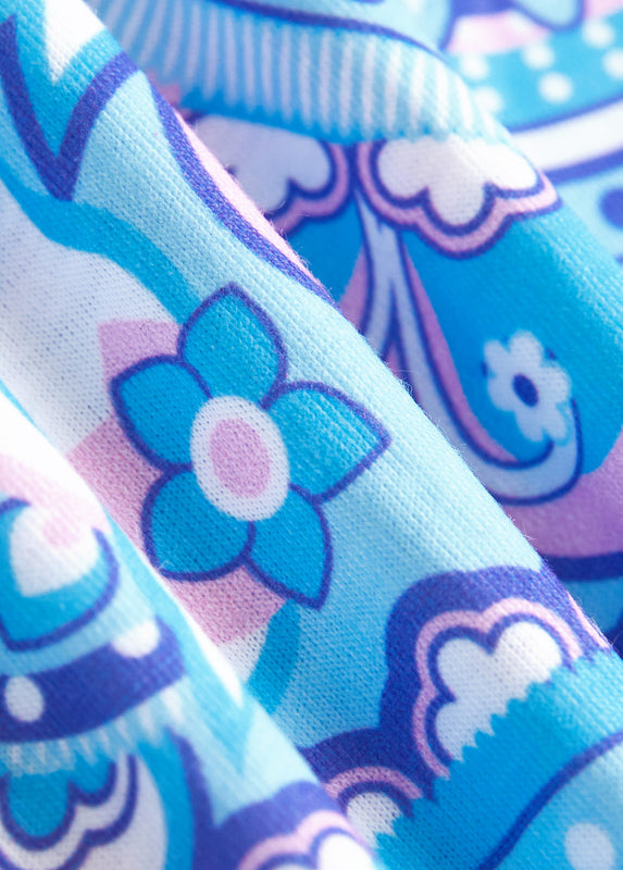 Alisa Light Blue Eyelet Tribal Print A Line Sleeveless Dress