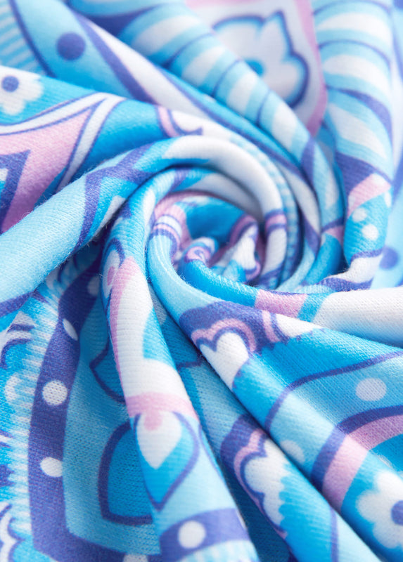 The Alisa Light Blue Eyelet Tribal Print A-Line Sleeveless Dress is styled with a soft light blue base and detailed with a tribal-inspired print. It features a round neckline, sleeveless cut, and a classic A-line silhouette for a relaxed yet elegant look. Designed in a midi length, this pullover dress is made from lightweight fabric that provides comfort and natural coverage.